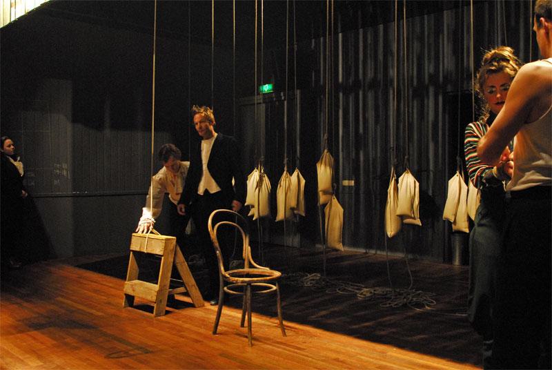 Alvast deel II uit de cyclus: Eenheid van tijd, plaats, handeling (I Na-oorlogs, II Plaatsbepalingen, III Vertrek). Met: de Dikke Vrouw, Tiresias, Reverend Jenkins, George: haar echtgenoot, mager, met grijzend haar, Fantasio, Waldorf & Stadler en de Coulissenviolist. Een totaal chaotische kamer die duidelijk mooi ingericht is geweest; antieke meubelen, mooie kleden, lampen, schilderijen, boeken, alles dooreen gesmeten. Zegt de Dikke Vrouw: I think we are in Rats' Alley.