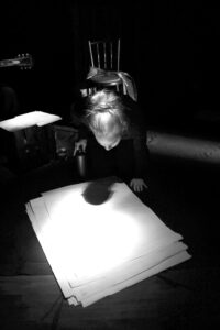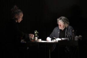 Een nieuwe toneeltekst van Erik Bindervoet geschreven voor ’t Barre Land over de verhouding tussen Oei (ca.1800- ca.1866) en haar vader, de Japanse tekenaar Katsushika Hokusai (1760-1849). Oei was zijn leerling en werkte als assistent in zijn studio, maar maakte ook eigen werk, wat ze overigens zelden signeerde. Ze wordt ook wel ‘de spookschilder’ genoemd, omdat er zo weinig over haar bekend is.