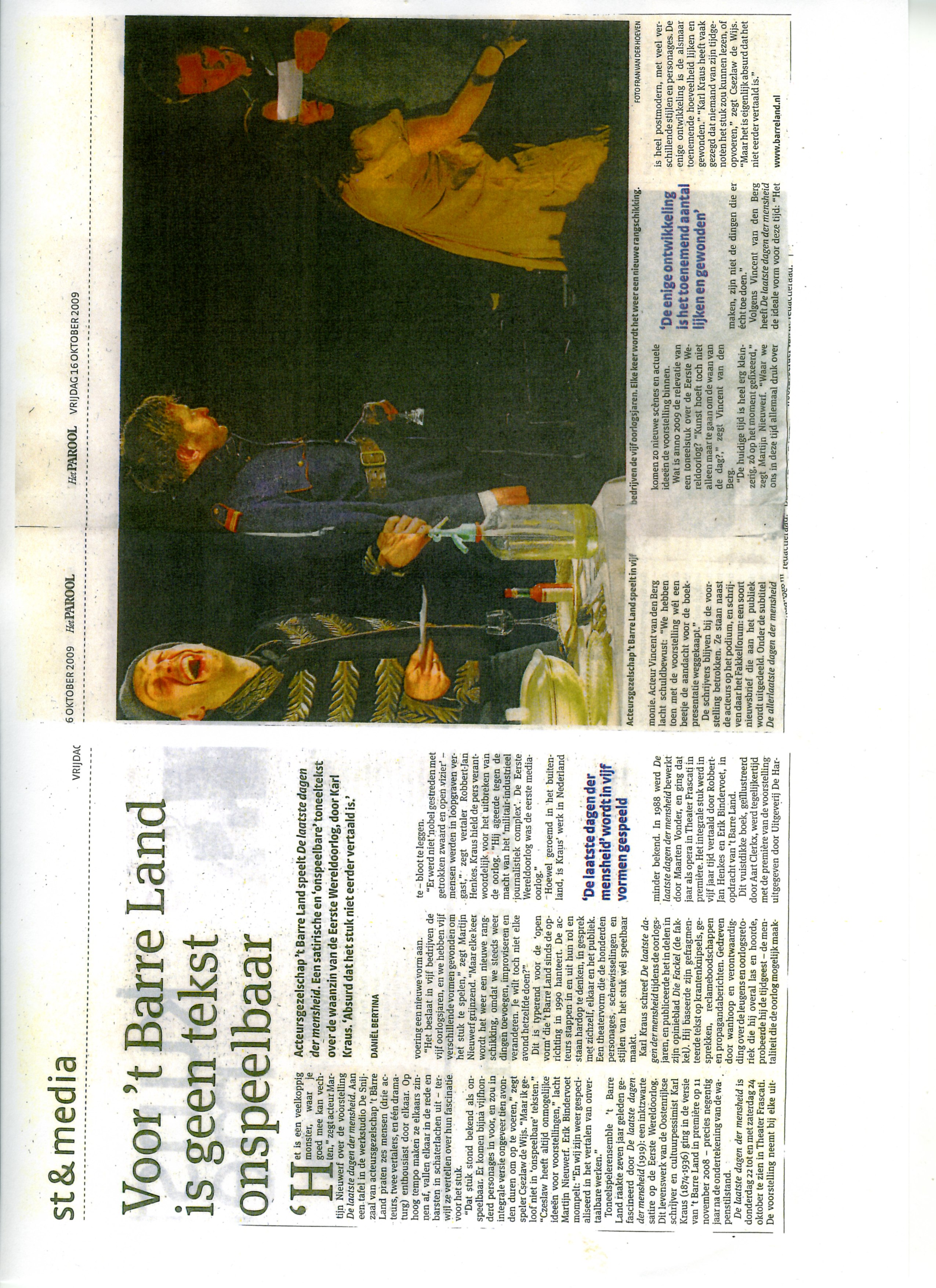 Daniel Bertina interviewde toneelspelers, vertalers en dramaturgen over De laatste dagen der mensheid voor Het Parool van 16 oktober 2009.